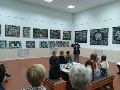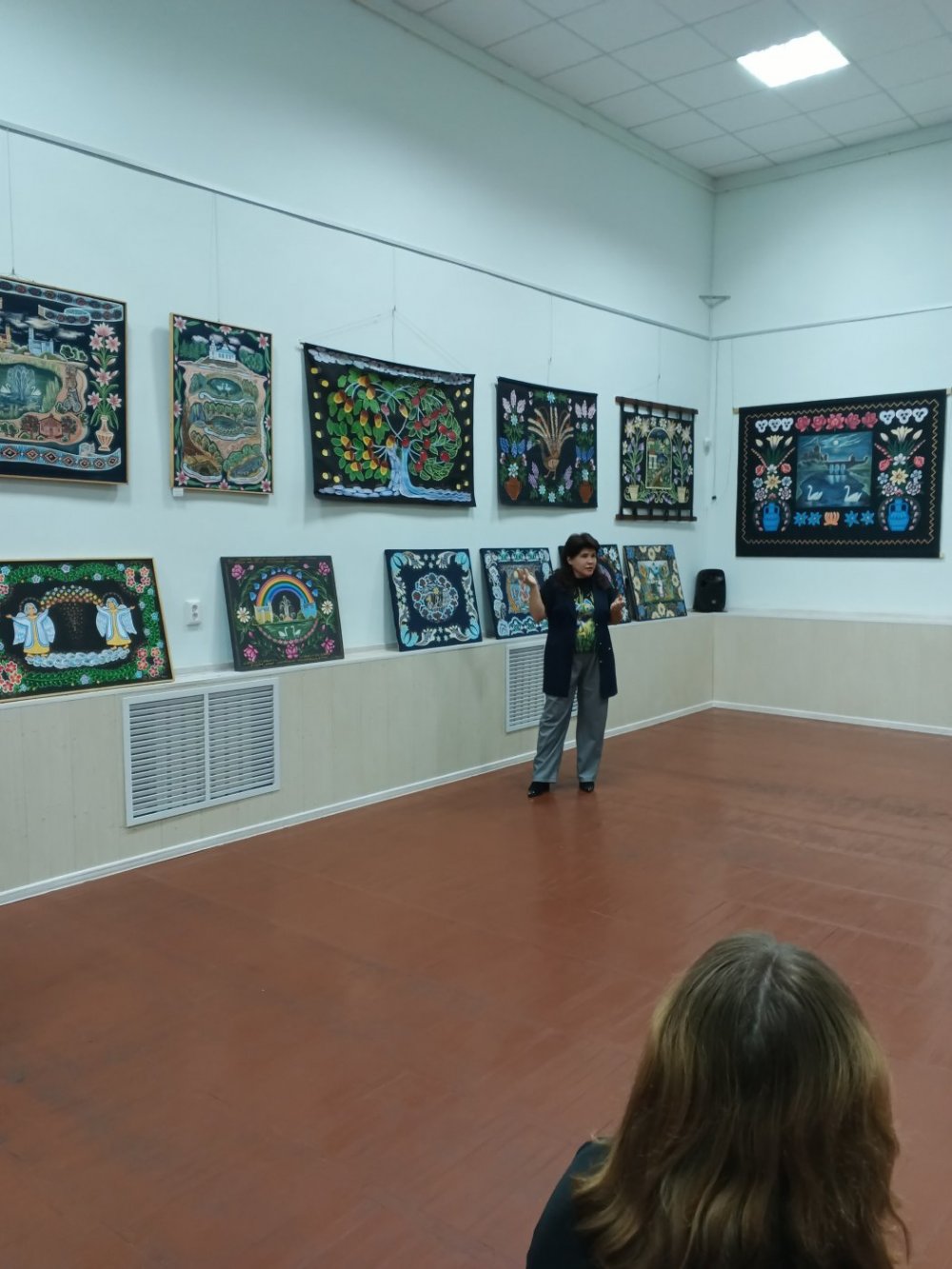 В выставочном зале состоялось открытие первсональной выставки Светланы Скавырко "Традиционное искусство рисования ковров". Маляванки – уникальный вид белорусского народного творчества – расписные настенные ковры. Рисованные ковры — культурное наследие белорусов, известны с конца 19 века, но наибольшее их распространение получили в 30-50-х годах 20 века, когда велась интенсивная реконструкция деревни. В этой области народной живописи сформировалась собственная поэтика идиллической картины мира с характерными для нее живописно-пластическими метафорами рая. Их дарили на свадьбу или на новоселье. Ковры носили сюжетно-тематический характер: катание на лодках, встречи или прощания влюбленных, архитектурные пейзажи в наивно-реалистическом стиле. Сюжеты были окаймлены орнаментально-растительными мотивами. Яркими мастерами создания этих ковров являются Елена Киш, художница-путешественница, создавала маляванки иногда за кусок хлеба. Другим ярким создателем маляванок является Язеп Дроздович, уроженец Глубокского района, белорусский Леонардо да Винчи, он иобладал многими знаниями и стремился эти знания отдать людям. В 30-е годы прошлого столетия был вынужден зарабатывать себе на жизнь, путешествуя по белорусским деревням, рисуя маляванки по заказу крестьян. Но он поставил себе цель – повысить художественный вкус крестьян, а также просвещать их, рисуя ковры. Он рассказывал обо всем, что знал. В 60-ых годах интерес к рисованным коврам пропал. Возрождение народного творчества началось в 80-ых годах 20 века. В 2014 году традиционное искусство рисованных ковров Витебского Поозерья было внесено в список историко-культурных ценностей нашей страны, при финансовой и консультативной поддержке ЮНЕСКО. Народный мастер Беларуси Светлана Сковырко знает секреты деревенского искусства и более 20 лет создает картины на холсте в уникальном жанре, являясь последователе Язепа Дроздовича. Она внесла огромный вклад в признание маляванок культурным наследием белорусов. Светлана Анатольевна уроженка Гомельской области. Профессиональное образование получила в Бобруйском художественном училище и Минском университете имени М. Танка. Трудовую деятельность начинала в Вилейке, затем переехала в Глубокое и сейчас является мастером народных художественных ремесел Глубокского дома ремесел. В 2009 году была принята в Белорусский союз мастеров народного творчества. Светлана Анатольевна является постоянной участницей выставок, конкурсов, праздников различного уровня, награждена грамотами и дипломами. Мастер провела ряд персональных выставок и мастер-классов по популяризации художественной росписи. В 2009 г. Светлана Анатольевна стала лауреатом праздника-конкурса мастеров народного рисования и современной росписи “Райский сад” в номинации “Роспись по холсту”. В 2014 г. получила Гран-при на празднике-конкурсе “Краски небес”, в рамках Международного фестиваля искусств “Славянский базар в Витебске”. Светлана Анатольевна рассказала о своих работах, особое внимание обратила на генеалогическое древо своей семьи. Провела мастер класс по созданию маляванак.