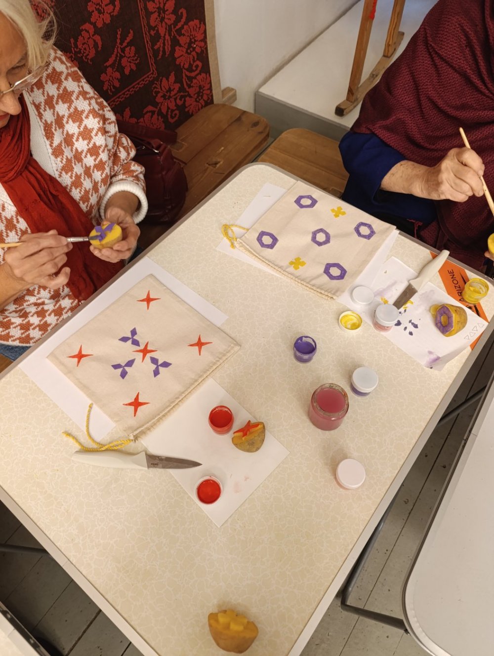 Сначала участники мастер-класса познакомились со старинной техникой декорирования ткани. Ремесло когда-то зародилось под ударами деревянного молотка с помощью досок-клише с рельефным орнаментом — набиванок. Под рукой тогда не всегда были нужные инструменты для работы. Люди проявляли смекалку! Для набойки часто использовали не только деревянные штампы, но и вырезанные из сырого картофеля, репы или моркови. Этот процесс ласково называли «цацкаванне». В Музее традиционного ручного ткачества Поозерья успешно возродили данную традицию! Мастер-класс был посвящён именно народному мастерству. Под руководством ведущего научного сотрудника музея Т. В. Бараненко участники мастер-класса с энтузиазмом принялись за создание собственных штампов из картофеля с простым геометрическим узором. Затем наступил самый интересный момент — декорирование ткани. Участники будто стали настоящими мастерами-набойщиками!